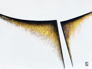 E’ una raccolta di opere che si presentano come due serie complementari: gli strappi (“rip-out”) di cartone e acrilico di diverse dimensioni, e gli acquerelli di piccolo e mdio formato tratti dalla serie delle “Espansioni”. Un corpus di opere omogeneo dedicato alla percezione dello spazio come evenienza simbolica, che apre a possibili nuovi scenari in cui l’oro, a partire da sfondi bianchi lattiginosi o neri come il buio del cosmo, illumina e diventa protagonista dell’opera. Una dimensione non più unicamente fisica, ma che, tramite l’astrattismo e l’universalismo delle forme geometriche, si fa apertura verso orizzonti incorporei e spirituali.